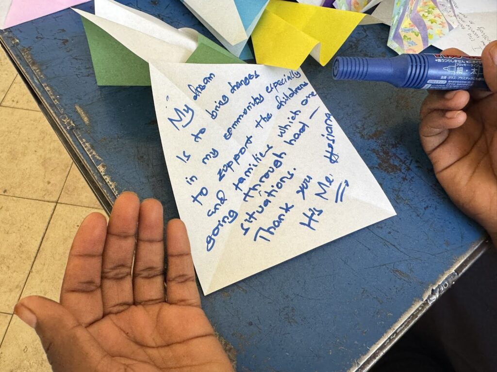 今年も、奨学生の方たちと直接交流をする時間をいただきました。一緒にワークショップをしたり、私はアクティビティチームとして、日本の文化に触れていただく企画として、和菓子(一口羊羹)と抹茶入り緑茶を提供したり、日本からご寄付でいただいた折り紙をつかって紙飛行機を一緒に折るワークを行いました。