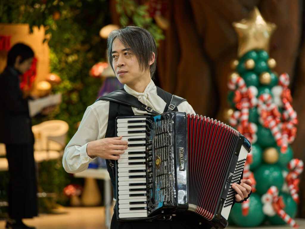 アコーディオン演奏は、えびさわなおき。さん。クリスマスの雰囲気を盛り上げてくださいました。